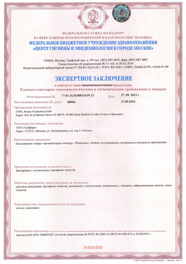 Сертификаты - Официальный дилер PARKER в Златоусте